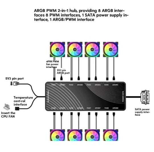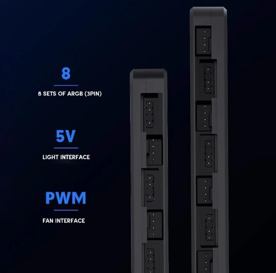 ARGB&PWM two in one hub, providing 8 ARGB interfaces, 8 PWM interfaces,