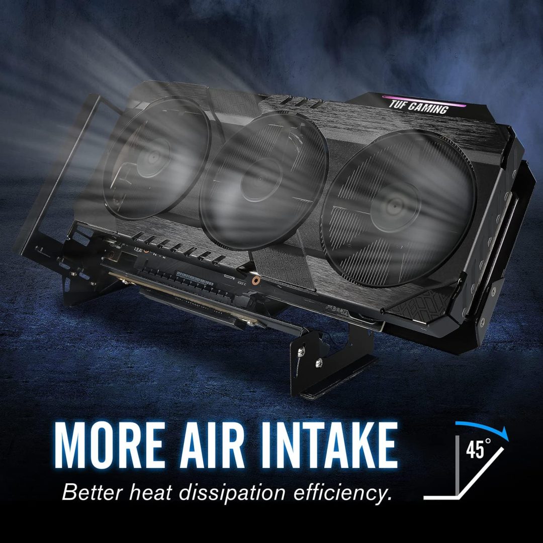 - The adjustable Vertical GPU mount allows to show off their GPUs and enhance cooling efficiency by mounting it vertically, or at an angle between 0 and 45 degrees, on the PSU shroud or any metal plane.