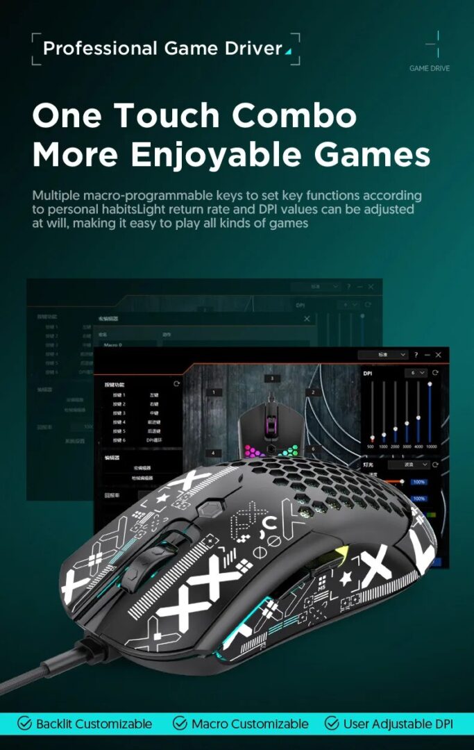 M5 Lightweight Wired Multi Key Macro Programming RGB Lights 12000dpi PAW3325 200IPS Professional Game Mouse