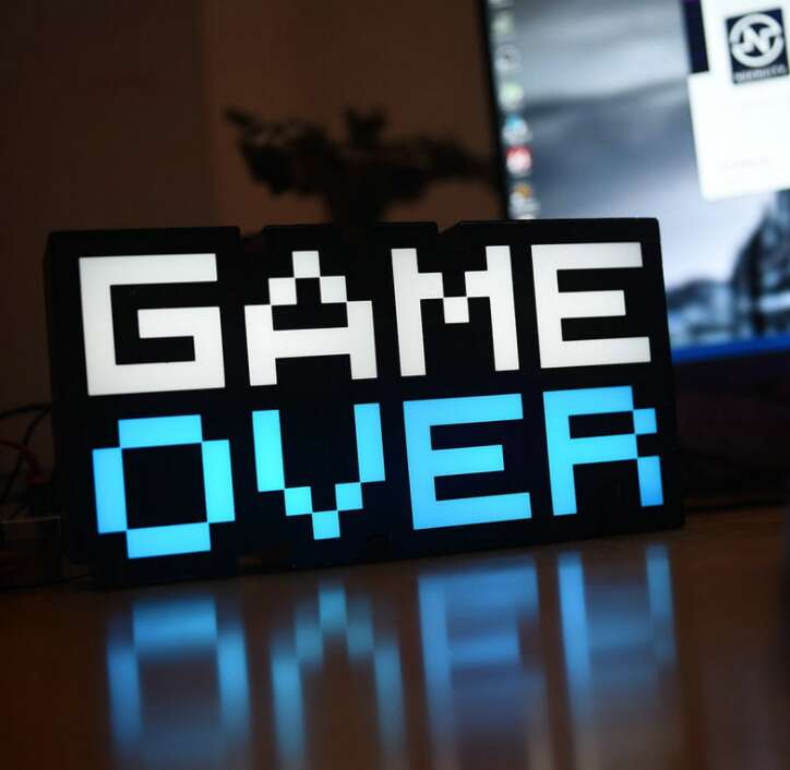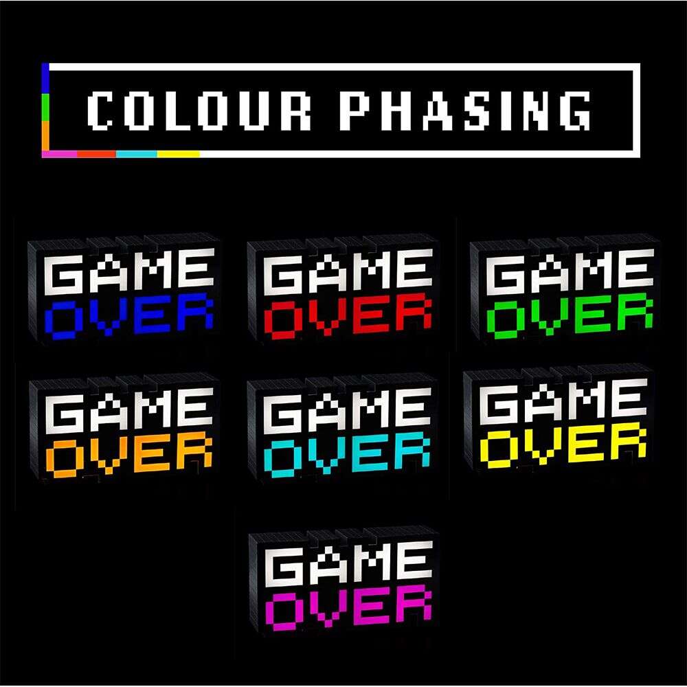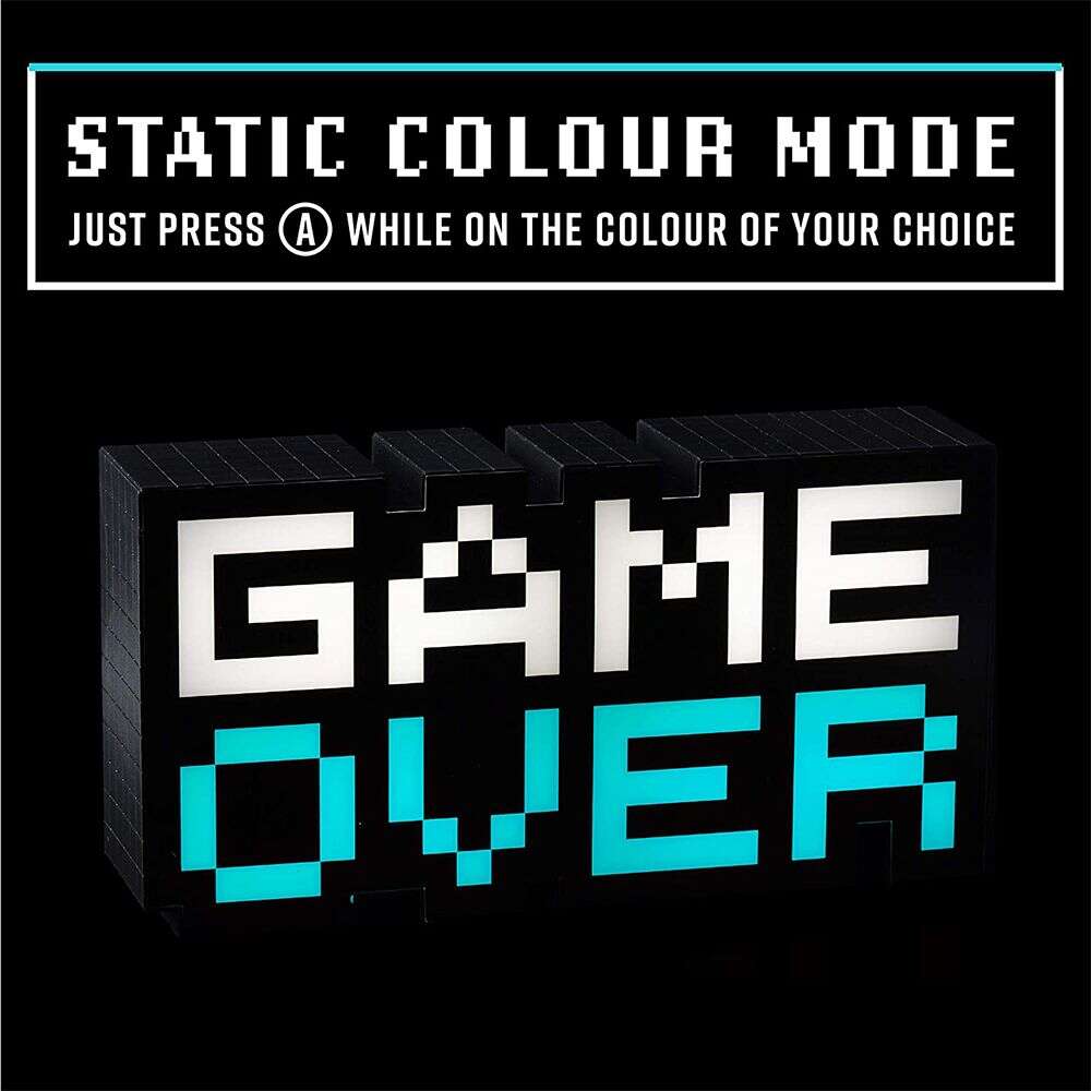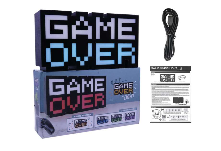 - GAME OVER: Fans of vintage video games will love this light! Featuring the words “game over,” this light recalls back to gaming in the past. Fellow video gamers will love seeing this light!