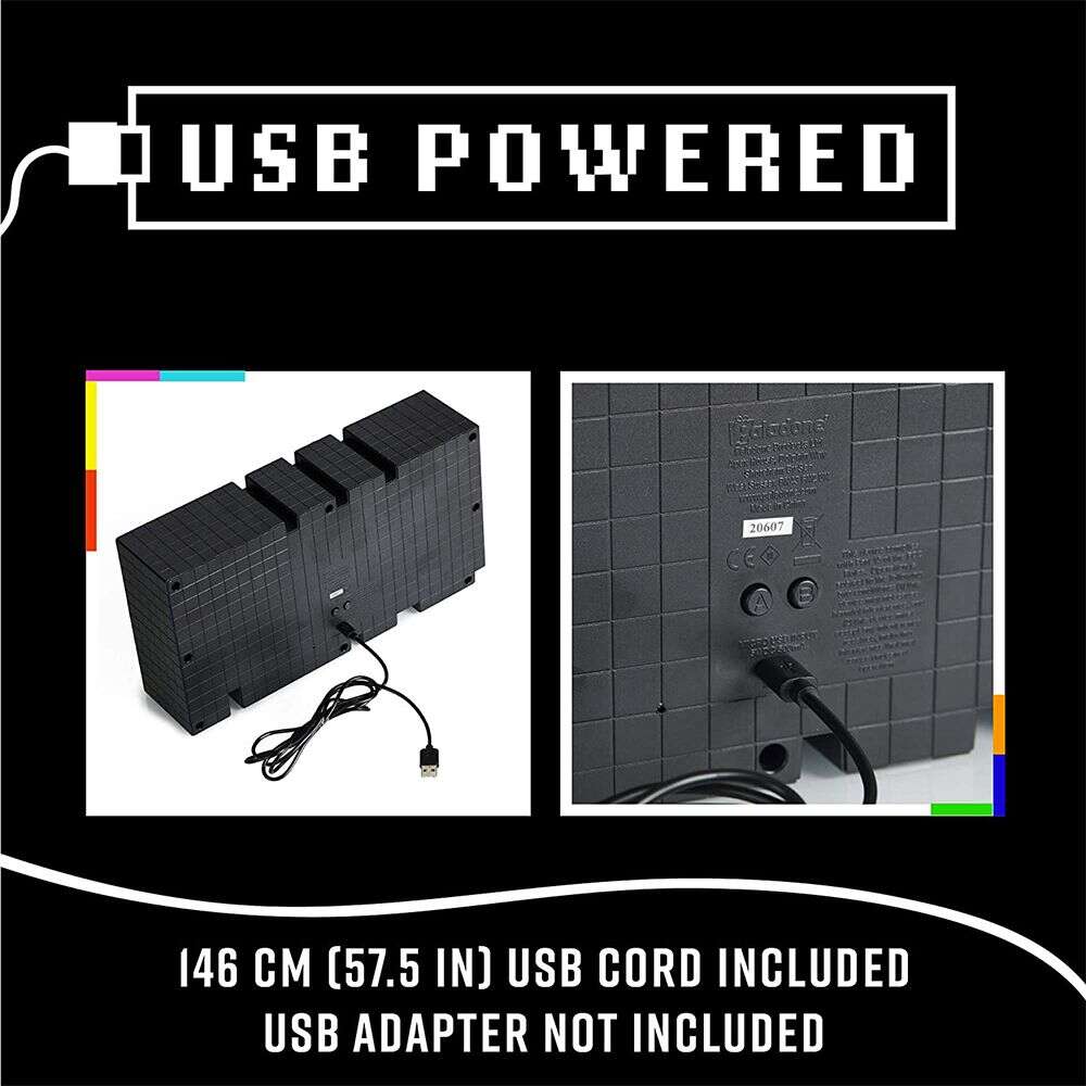 - DETAILS: This homage to the 8 – bit gaming era stands 30 centimeters wide (approximately 12 inches) and is sound reactive and color phasing. It features the colors orange, blue, green, and purple.