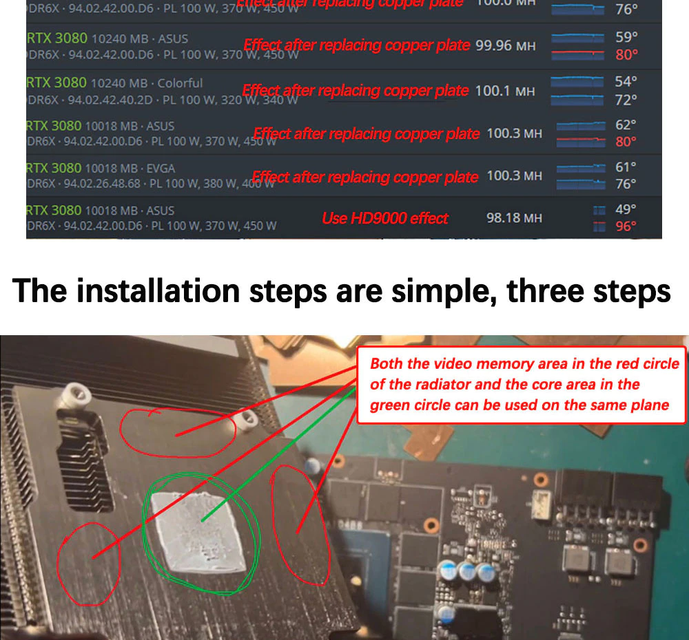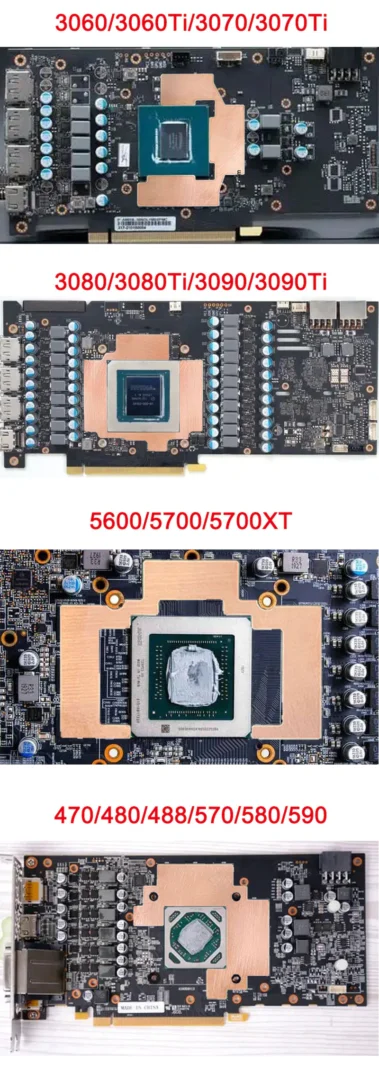 Suitable for 3060(ti) 3070 (ti), 3080 (ti), 3090, 3090Ti and AMD 5600-5700XT, 6600-6900XT graphics cards with thermal pads above 2mm. Customized models are not suitable for other models!!