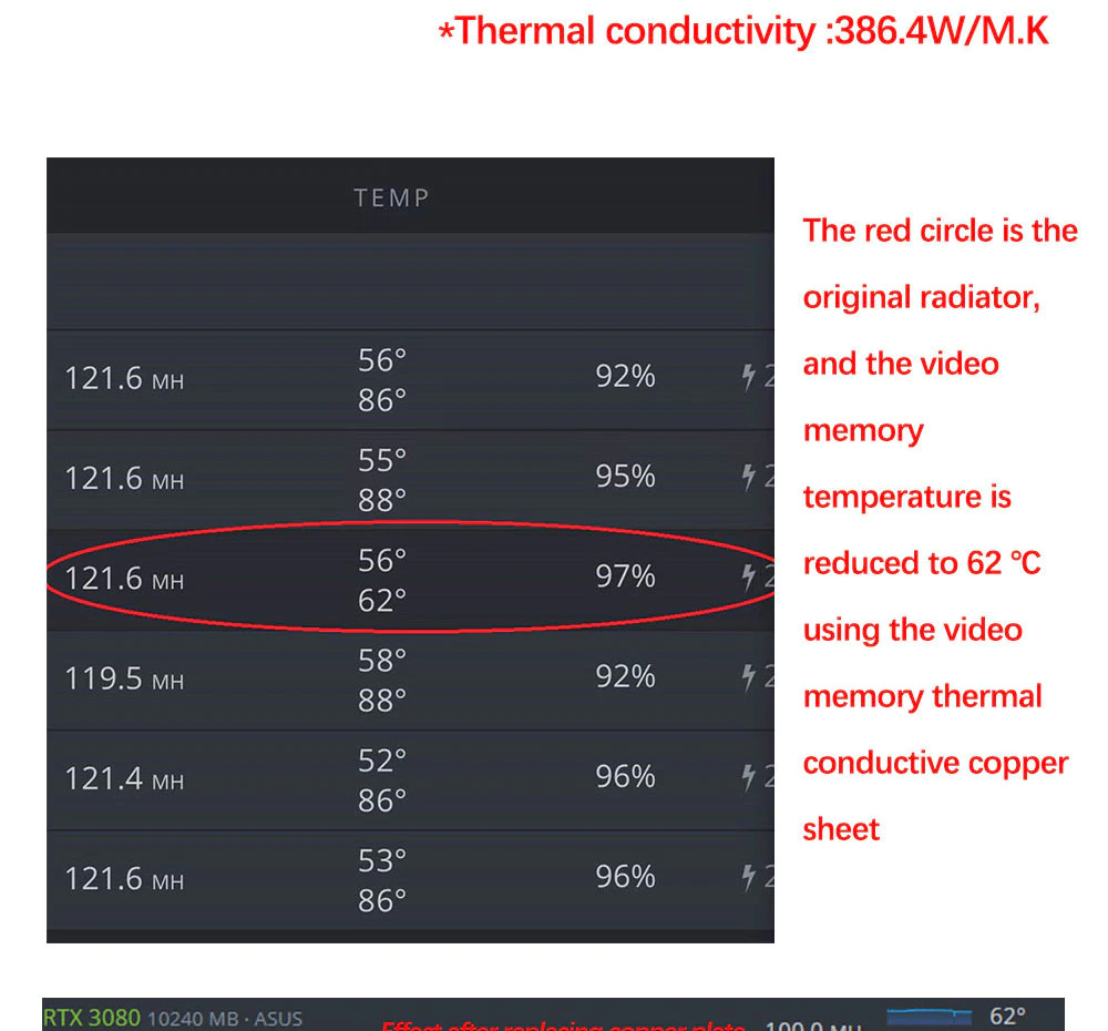 1. The thermal conductivity and heat dissipation of the made graphics card is pure copper, with a thermal conductivity of 386.4W/M.K.