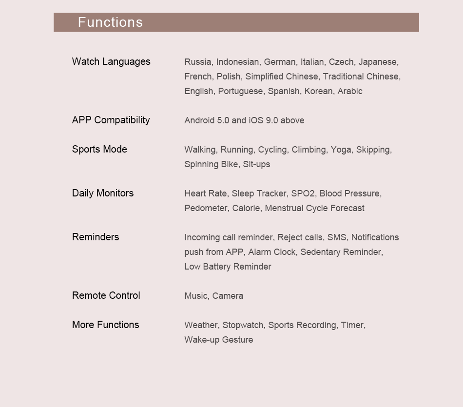 - Display screen: 1.09 inch TFT -LCD; Resolution 240*240