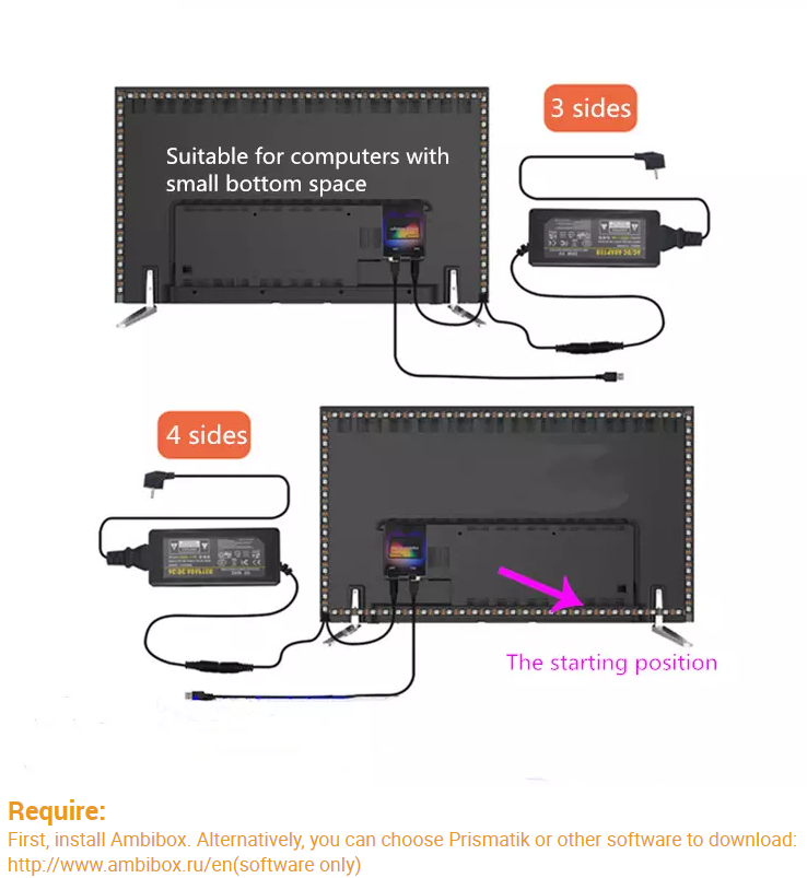 2. Before it’s set up well in Ambibox software, the LEDs will not light up, or only several LEDs will light up. Pls set up in Ambibox first.