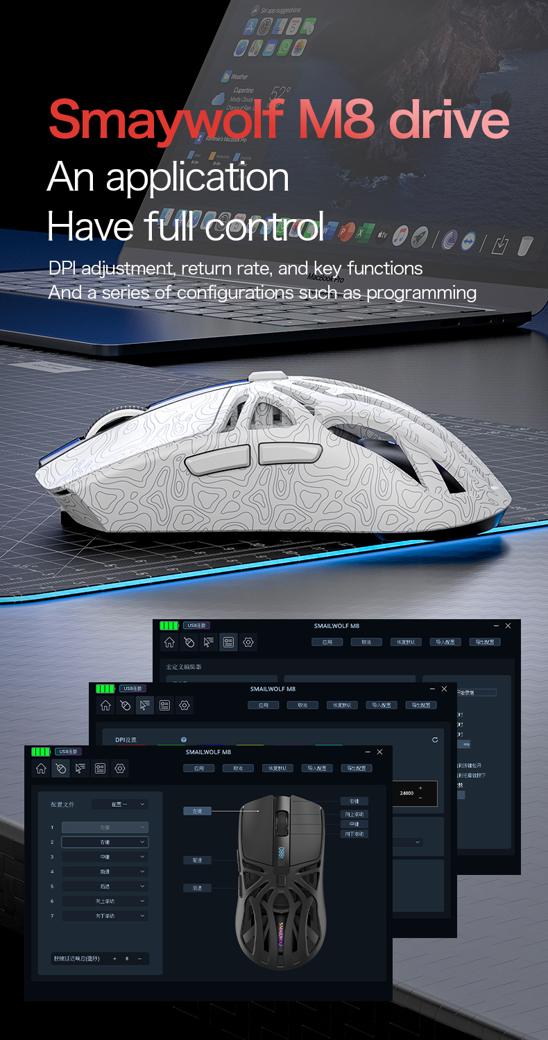SMAILWOLF M8 Trimode Connection Mouse Details