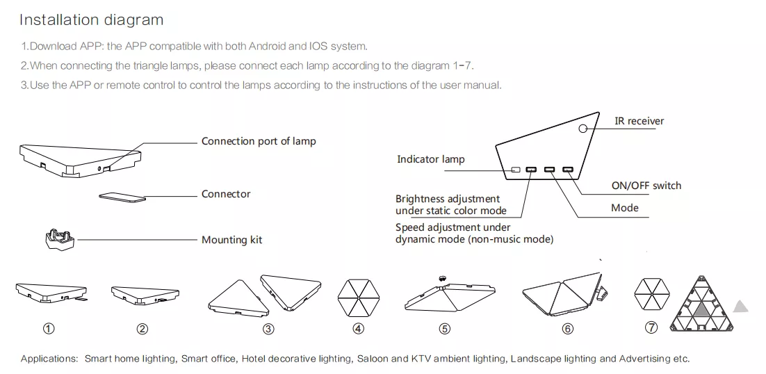 Smart Light Panel 6,9 and 12 Piece kit including music controller and Mobile apps supported