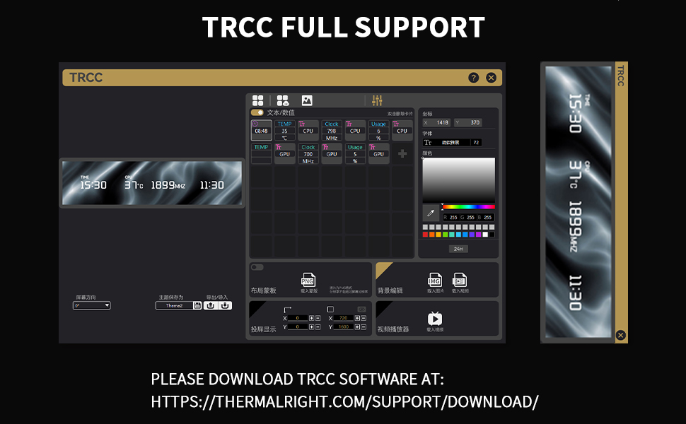 • [1920×480 resolution] Using TRCC software, freely monitoring system parameters display, supporting multiple static/dynamic image switching, as well as video playback, DIY personalized theme display