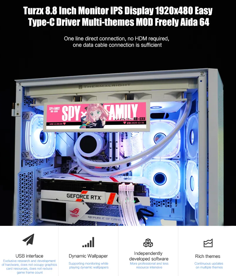 TURZX 8.8″ PC Narrow Display USB Type-C